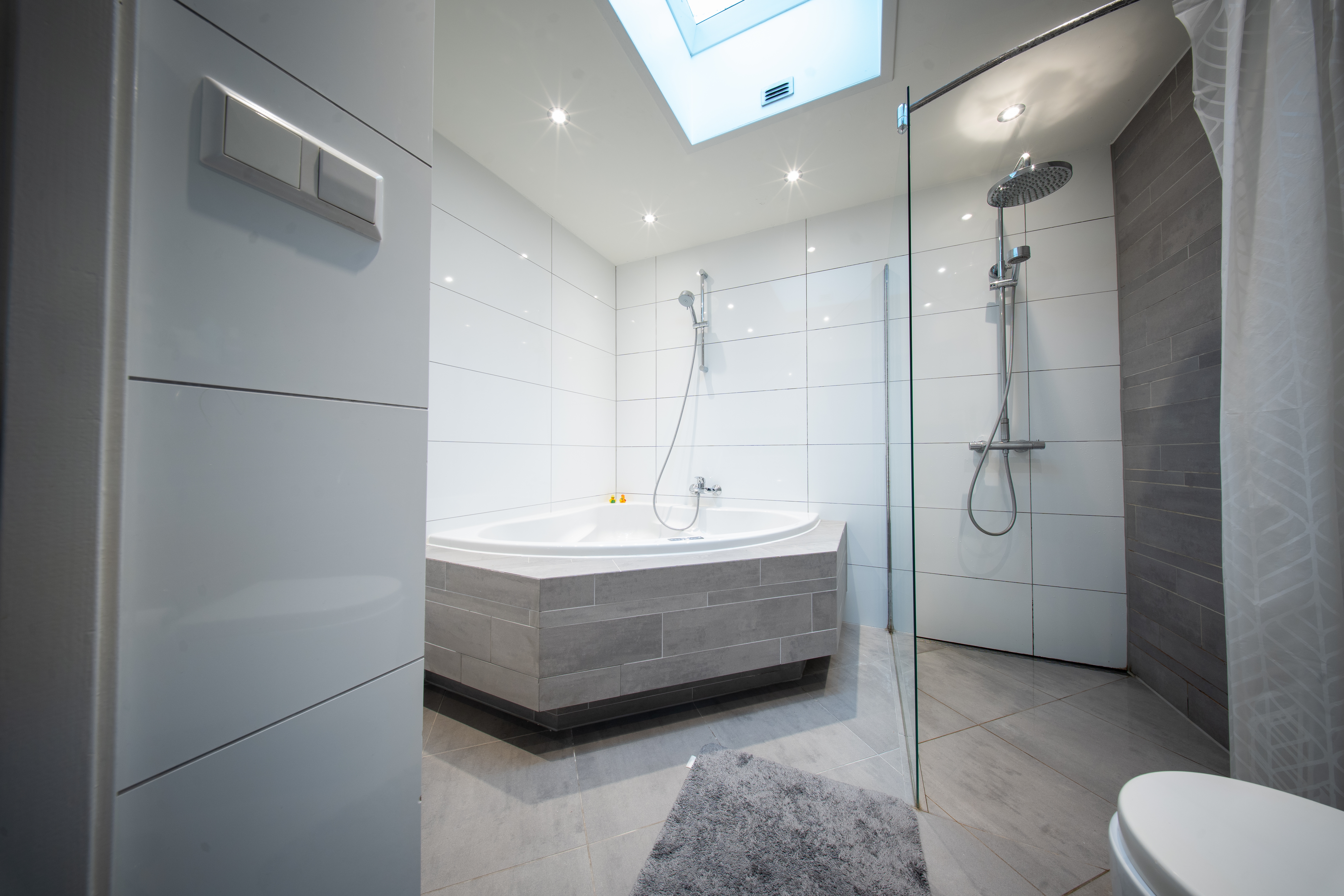 De badkamer is recent volledig gerenoveerd en uitgerust met een heerlijk ligbad, een aparte inloopdouche, een modern wastafelmeubel en een tweede toilet; een ruimte waar comfort en ontspanning centraal staan.