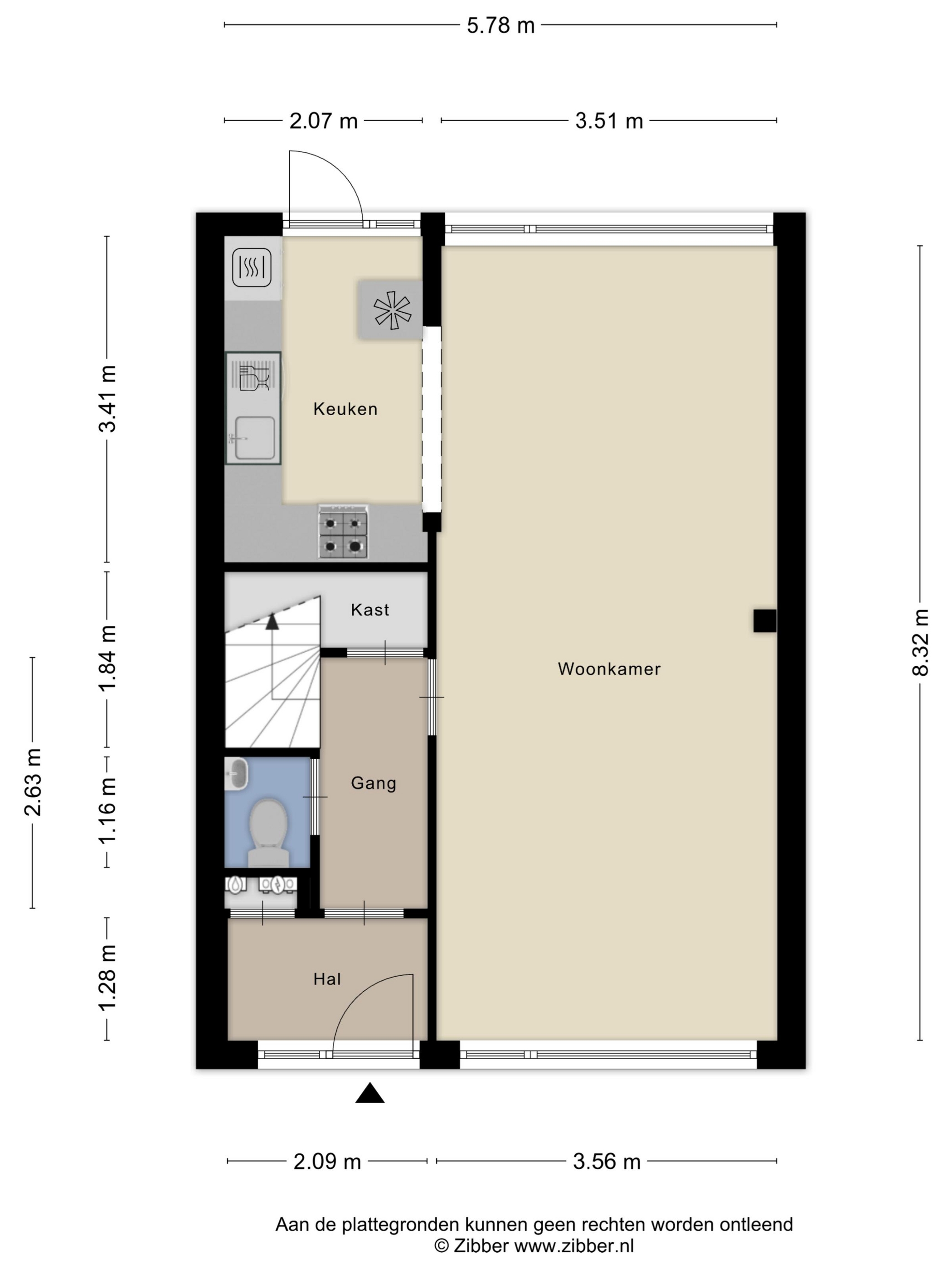 Via de entree kom je binnen in de hal met toilet, meterkast en trapopgang. De woonkamer is ruim en licht en staat in directe verbinding met de keuken. De keuken is netjes en functioneel ingericht en voorzien van de benodigde apparatuur.