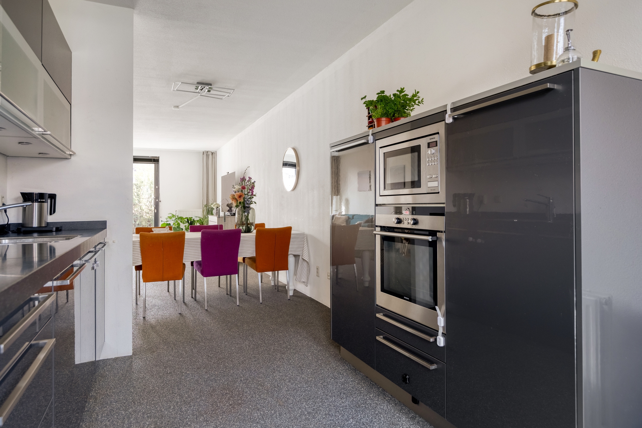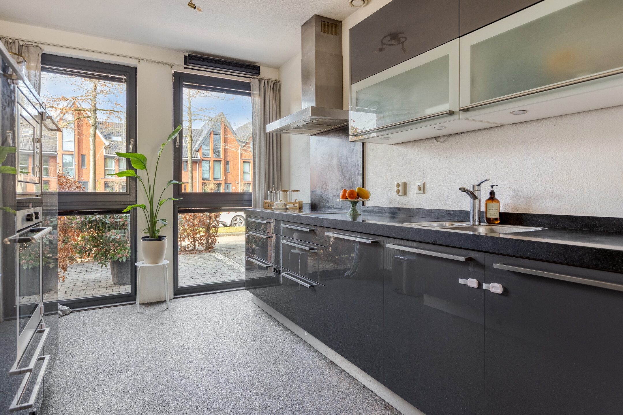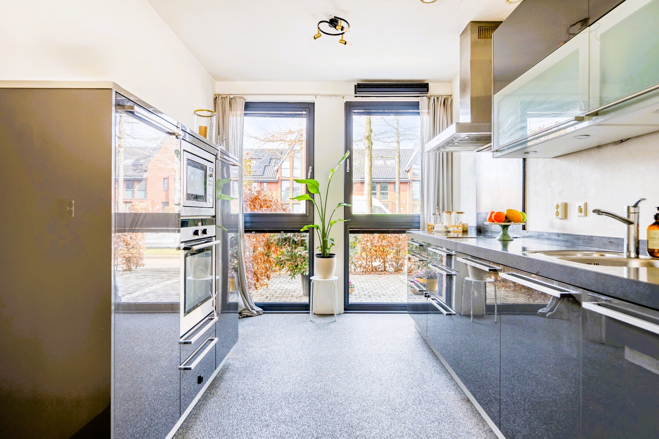 De keuken is compleet uitgevoerd en voorzien van diverse inbouwapparatuur. Door de praktische opstelling is er voldoende werkruimte en kastruimte aanwezig.