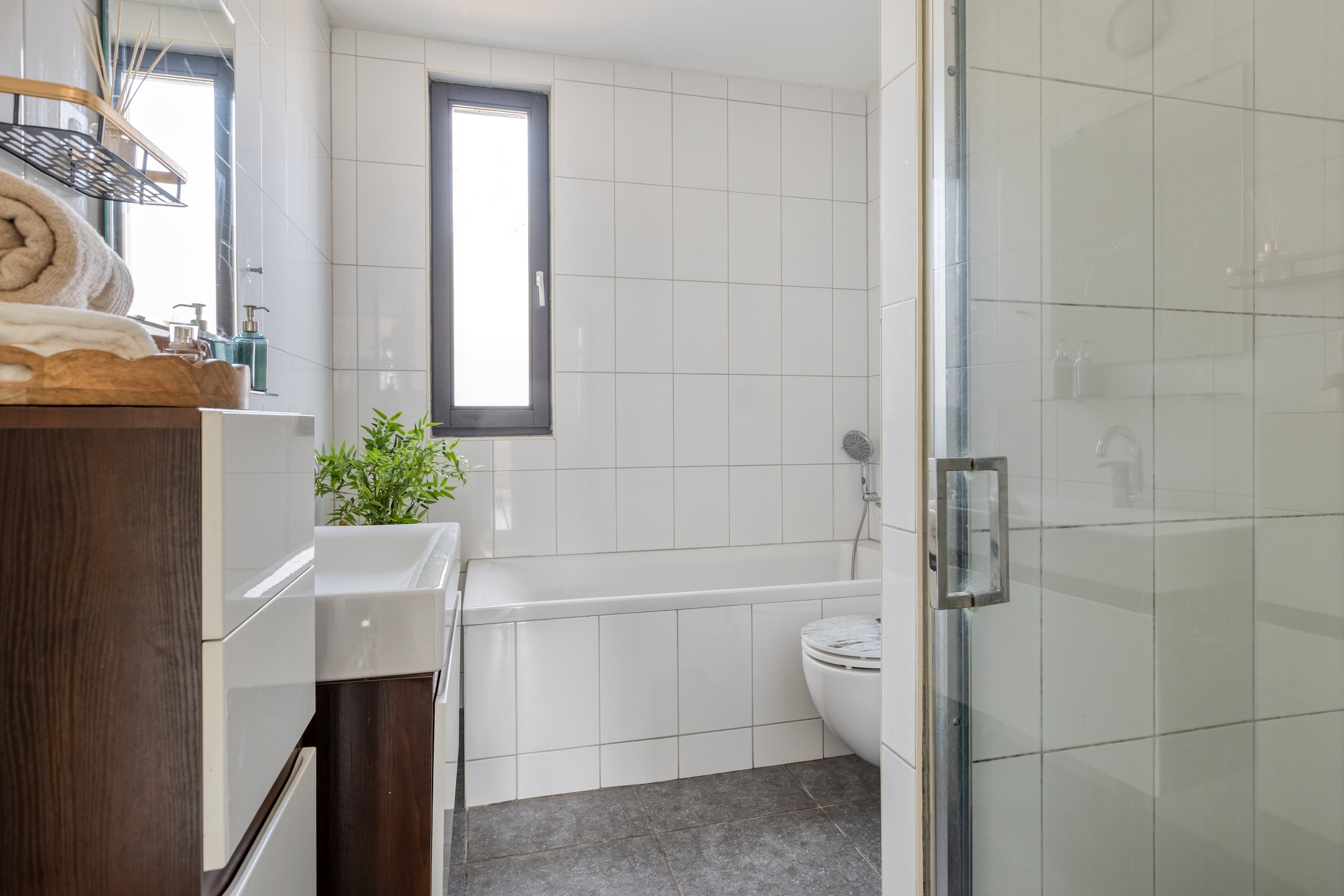 Hier bevinden zich twee grote slaapkamers en een moderne badkamer. De badkamer is voorzien van een ligbad, douche, wastafel en toilet.