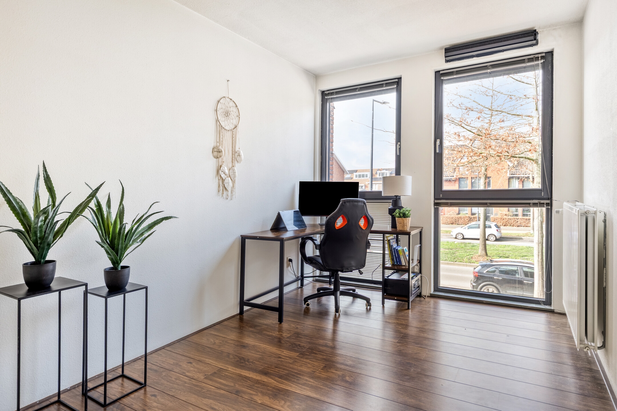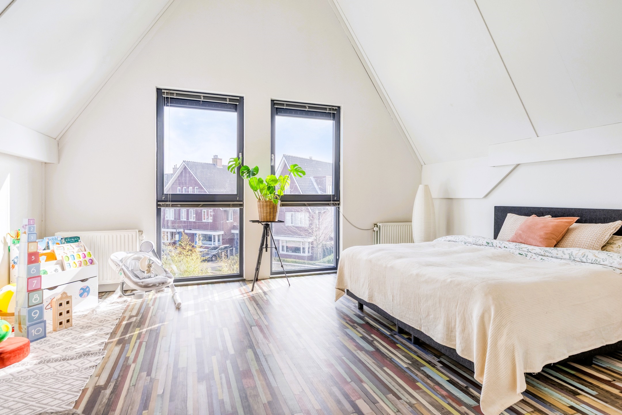De woning heeft gedurende de hele dag een prachtige natuurlijke lichtinval. De slaapkamers en de achtertuin krijgen in de ochtendzon veel licht, samen met een aangenaam briesje en een mooi uitzicht. De voortuin profiteert juist van de lange avondzon dankzij de open ligging tussen de huizen.